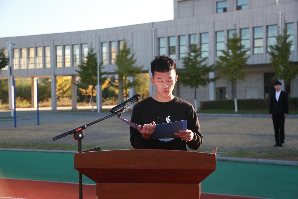 學(xué)院團委副書記韓麗娜發(fā)表國旗下講話,她代表全校共青團組織和全體團員青年,向2020級新同學(xué)的到來,表示熱烈的歡迎,并提出了三點祝愿和希望:一是堅定理想信念,自覺把個人理想信念同祖國命運和民族振興緊緊聯(lián)在一起,勇敢肩負起時代賦予的重任。二是練就過硬本領(lǐng),不斷夯實專業(yè)基礎(chǔ),提升實踐技能。三是堅持全面發(fā)展,牢記“厚德 篤行”的校訓(xùn),踐行“敬誠精專勤文善樂”的學(xué)生成長八字箴言,做德智體美勞全面發(fā)展的時代新人。