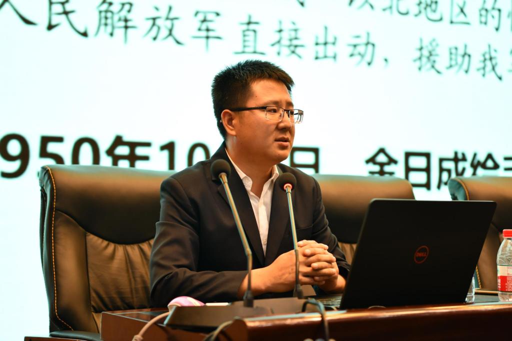 徐祝申副教授講座以《抗美援朝戰(zhàn)爭勝利的歷史意義及現(xiàn)實啟示》為題,分別從抗美援朝的出兵決策、抗美援朝戰(zhàn)爭進程、抗美援朝戰(zhàn)爭勝利的歷史意義、抗美援朝戰(zhàn)爭勝利的現(xiàn)實啟示四個方面為同學(xué)們進行了詳細地闡述和細致地分析。講座條理清晰,史實豐富,通俗易懂,尤其是“英雄兒女”的故事給師生們留下了極為深刻的印象。