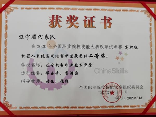 11月20日,2020年全國職業(yè)院校技能大賽改革試點賽“機器人系統(tǒng)集成”賽在濟南職業(yè)學院落幕。在我院自動控制工程系主任劉中華領隊,教師時佳、張穎的指導下,工業(yè)機器人專業(yè)19141班曹洪國和18143班畢玉奇同學組成的參賽隊,以優(yōu)異成績獲得了高職組二等獎榮譽。