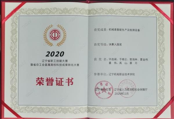 12月8日上午,2020年遼寧省職工技能大賽暨省總工會(huì)直屬高??萍汲晒D(zhuǎn)化大賽頒獎(jiǎng)典禮在沈陽(yáng)航空航天大學(xué)舉行。來(lái)自我院自動(dòng)控制工程系許連閣、于曉云、郭海林、夏金偉、姜偉、高山、蔡月等7名教師申報(bào)的“機(jī)械表智能生產(chǎn)及檢測(cè)設(shè)備”項(xiàng)目榮獲“決賽入圍獎(jiǎng)”,學(xué)院工會(huì)榮獲“優(yōu)秀組織獎(jiǎng)”。