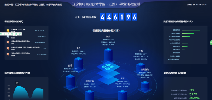 同時,教務(wù)處全面加強(qiáng)線上教學(xué)過程管理,通過學(xué)校教學(xué)平臺大數(shù)據(jù)系統(tǒng)實(shí)時掌握線上教學(xué)情況,開展線上教學(xué)日常檢查,加強(qiáng)教師教學(xué)管理,強(qiáng)化學(xué)生考勤管理,規(guī)范線上教學(xué)過程,全程直播教學(xué)、師生互動,教學(xué)過程留有痕跡,確保線上教學(xué)與線下教學(xué)同質(zhì)等效。