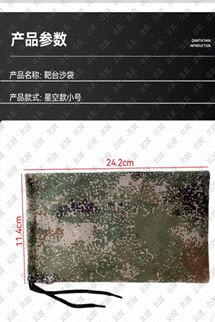 射擊沙袋 | 布制收縮繩、迷彩色、大小24*11.5cm | 7 | 50個(gè) | 350 |