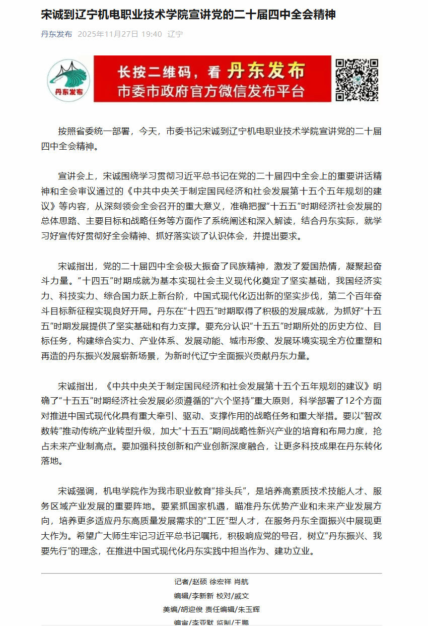 12月10日下午,黨委書(shū)記曲壯凱以“深學(xué)二十屆四中全會(huì)精神 勇?lián)聲r(shí)代技能報(bào)國(guó)使命”為題講授思政課。思政課上,曲壯凱圍繞“我們站在怎樣的歷史基點(diǎn)之上”“我們正奔向怎樣的未來(lái)圖景”“我們?cè)撊绾螘?shū)寫(xiě)自己的奮斗篇章”三個(gè)核心問(wèn)題依次展開(kāi)。他結(jié)合“十四五”時(shí)期國(guó)家制造業(yè)升級(jí)、技能人才隊(duì)伍建設(shè)的非凡成就,立足區(qū)域全面振興新突破的發(fā)展實(shí)踐,生動(dòng)闡釋了新時(shí)代青年成長(zhǎng)成才的堅(jiān)實(shí)基礎(chǔ)與平臺(tái)優(yōu)勢(shì);深入解讀“十五五”規(guī)劃中建設(shè)制造強(qiáng)國(guó)的戰(zhàn)略部署,...