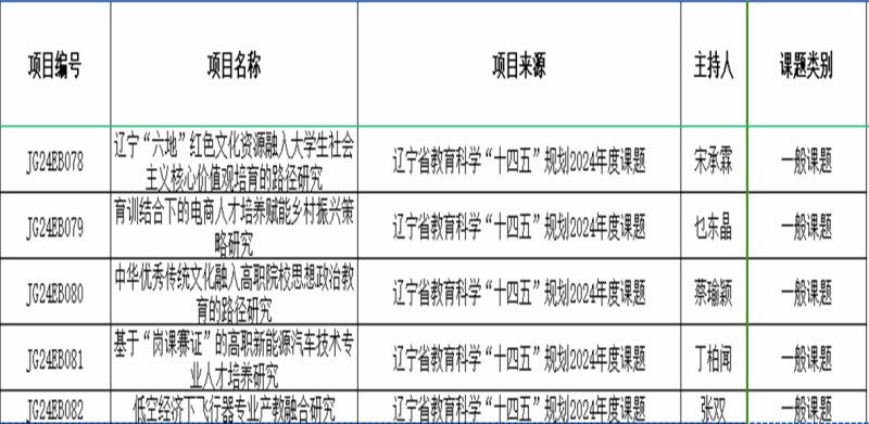 根據(jù)遼寧省教育科學(xué)規(guī)劃領(lǐng)導(dǎo)小組辦公室《關(guān)于批準遼寧省教育科學(xué)“十四五”規(guī)劃2024年度立項課題的通知》,我校5項課題獲批遼寧省教育科學(xué)“十四五”規(guī)劃2024年度立項課題。