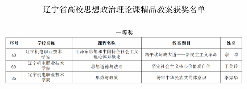 近日,遼寧省教育廳對2024年遼寧省高校思想政治理論課精品教案評選結(jié)果進行公布。我校馬克思主義學(xué)院教師榮獲一等獎3項,二等獎3項,三等獎1項。
