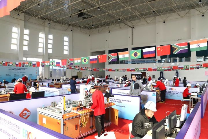 本屆賽項由我校承辦,為期4天,吸引了國內(nèi)外60支參賽隊伍的240 余名選手同臺競技。此項賽事由俄羅斯技能發(fā)展署(俄羅斯世界技能)、俄羅斯戰(zhàn)略倡議署、金磚國家工商理事會、韃靼斯坦共和國政府、俄羅斯科學和高等教育部主辦。金磚國家工商理事會技能發(fā)展、應用技術(shù)與創(chuàng)新中方工作組、一帶一路暨金磚國家技能發(fā)展國際聯(lián)盟、教育部中外人文交流中心為中方組織單位,北京華航唯實機器人科技股份有限公司提供技術(shù)支持。