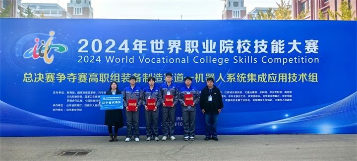 此外,于近日在我校承辦的2024金磚國家職業(yè)技能大賽“工業(yè)機器人數(shù)字孿生技術(shù)應(yīng)用”賽項國際總決賽中,學(xué)生白硯文、張涵禹組成的團隊在教師于曉云、高山的指導(dǎo)下與國內(nèi)外60支參賽隊伍的240余名選手展開角逐,最終榮獲大賽一等獎與金牌。同時,我校作為承辦方憑借出色的組織能力和周到服務(wù),榮獲了金磚國家職業(yè)技能大賽的“突出貢獻獎”。成績的取得,充分展示了我校師生在專業(yè)技能水平、教師隊伍素養(yǎng)以及職業(yè)技能教育發(fā)展和創(chuàng)新等方面的實力與風(fēng)采。