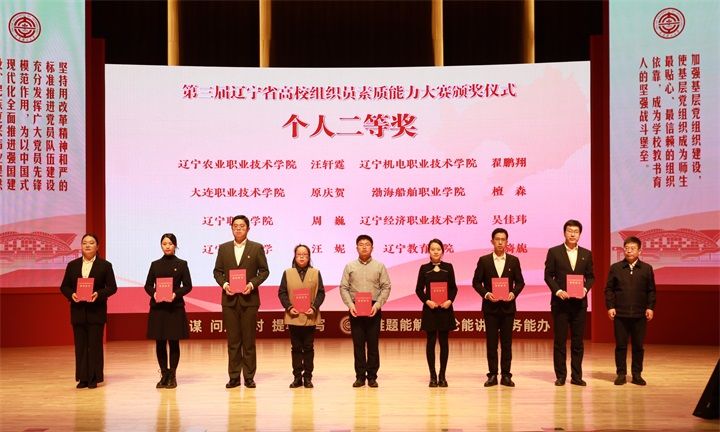 12月8日,由中共遼寧省委教育工委、遼寧省教育廳主辦的第三屆遼寧省高校組織員素質(zhì)能力大賽圓滿(mǎn)結(jié)束。我校信息工程學(xué)院專(zhuān)職組織員翟鵬翔、汽車(chē)工程學(xué)院專(zhuān)職組織員張克軍代表學(xué)校參賽。二位選手發(fā)揮穩(wěn)定、表現(xiàn)精彩,經(jīng)過(guò)激烈角逐,我校獲集體二等獎(jiǎng),翟鵬翔獲個(gè)人二等獎(jiǎng)。