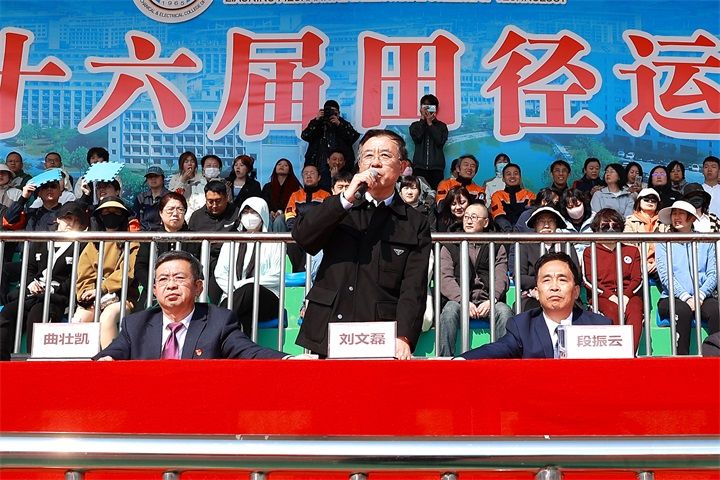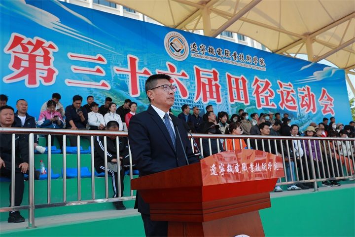 丹東市邊境經(jīng)濟(jì)合作區(qū)企業(yè)家協(xié)會(huì)會(huì)長(zhǎng),丹東國(guó)通電子元件有限公司董事長(zhǎng)劉文磊宣布遼寧機(jī)電職業(yè)技術(shù)學(xué)院第36屆田徑運(yùn)動(dòng)會(huì)開(kāi)幕。