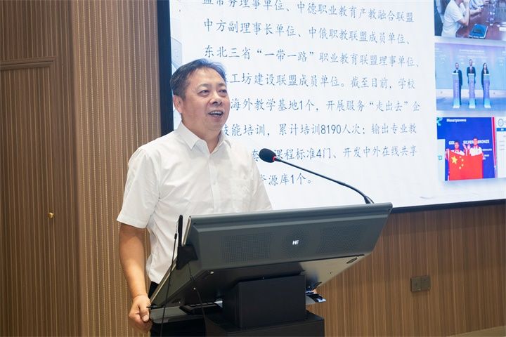 韓國海對我校的接待表示感謝,并介紹了本次考察調(diào)研的目的和意義,希望通過本次考察調(diào)研活動,兩校能進一步增進了解、加深友誼,在推動職業(yè)教育高質(zhì)量發(fā)展的道路上攜手向前,共同進步。