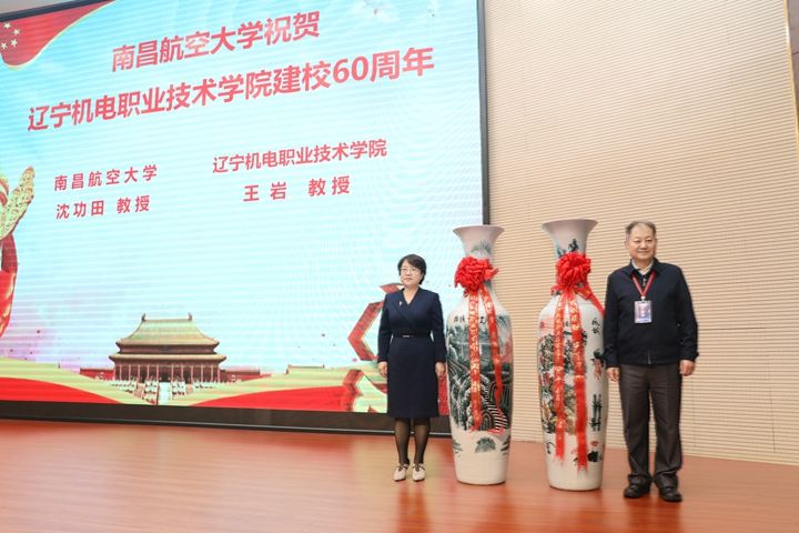 今年是丹東正式成為“中國射線基地”60周年,也是我校建校60周年。會上,中國機(jī)械工程學(xué)會無損檢測分會主任委員沈功田代表南昌航空大學(xué)對我校建校60周年贈送手繪花瓶表示祝賀,副校長王巖代表學(xué)校接受賀贈并表示感謝。