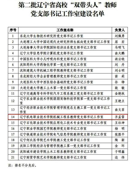 第二批遼寧省高?!半p帶頭人”教師黨支部書記工作室建設名單