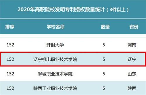 1月,高職發(fā)展智庫(kù)發(fā)布《2020年全國(guó)高職院校發(fā)明專利授權(quán)排行榜》,對(duì)2020年全國(guó)高職院校發(fā)明專利授權(quán)數(shù)量進(jìn)行統(tǒng)計(jì)分析,我院繼2019年后再次榮登遼寧省高職院校首位。