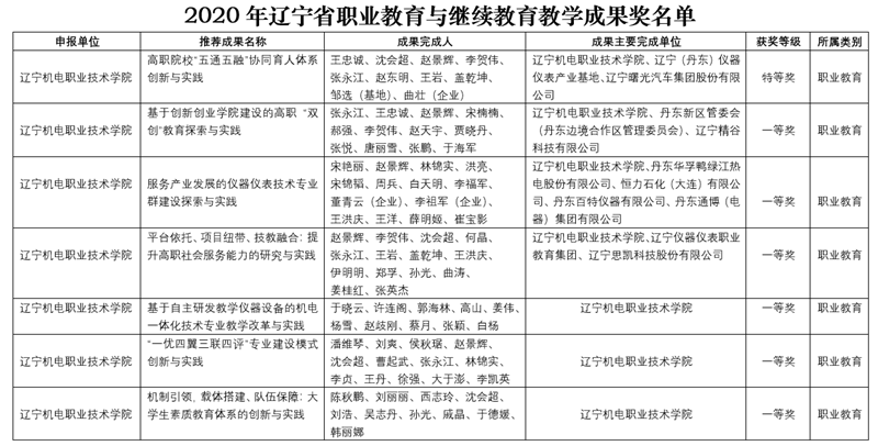 4月30日,我院教師榮獲遼寧省職業(yè)教育教學(xué)成果獎(jiǎng)特等獎(jiǎng)1項(xiàng)、一等獎(jiǎng)6項(xiàng)。