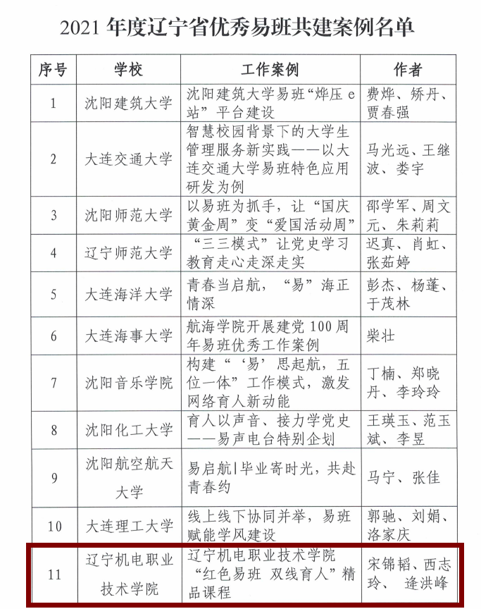 2021年度遼寧省優(yōu)秀易班共建案例名單