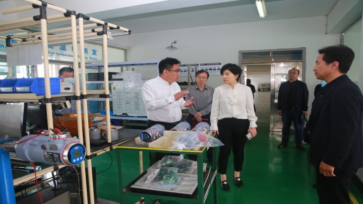 于宏國一行實地走訪了企業(yè)生產車間,張一丁對研發(fā)試驗設備、環(huán)境試驗設備、高壓試驗設備、技術研發(fā)中心產業(yè)生產線等高端儀器設備進行了介紹。于宏國對公司自主研發(fā)生產的物位儀表、流量儀表等產品給予充分肯定。