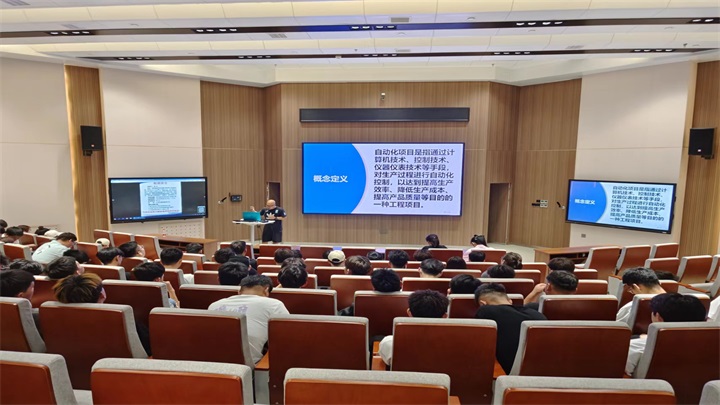 講座中,田冰從確定項(xiàng)目目標(biāo)、編制項(xiàng)目計(jì)劃、設(shè)計(jì)系統(tǒng)方案、采購(gòu)設(shè)備材料等相關(guān)環(huán)節(jié)和步驟,為同學(xué)們清晰地講述了項(xiàng)目實(shí)施的全過(guò)程。同時(shí),他還介紹了自己的研究經(jīng)歷和成果,以及在項(xiàng)目實(shí)施中遇到的困難和解決的途徑。他激勵(lì)同學(xué)們要深入學(xué)習(xí),多關(guān)注自動(dòng)化未來(lái)的發(fā)展方向,從而增進(jìn)自己的專業(yè)技能。