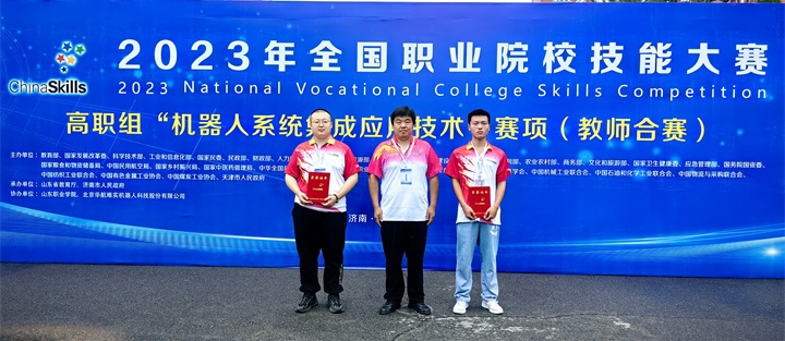 2023年全國(guó)職業(yè)院校技能大賽高職組“機(jī)器人系統(tǒng)集成應(yīng)用技術(shù)”賽項(xiàng)學(xué)生賽和教師賽于8月18至24日在山東省濟(jì)南市舉辦。我校自控系“機(jī)電一體化技術(shù)”專業(yè)學(xué)生任峻瑋、徐建洪組成的參賽隊(duì)在教師郭海林的指導(dǎo)下榮獲學(xué)生賽三等獎(jiǎng);我校自控系教師郭海林、洪亮組成的參賽隊(duì)榮獲教師賽三等獎(jiǎng)。