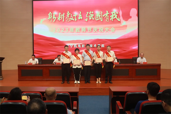 9月8日下午,在第39個(gè)教師節(jié)即將來(lái)臨之際,遼寧機(jī)電職業(yè)技術(shù)學(xué)院在報(bào)告廳舉行2023年教師節(jié)慶祝大會(huì)。學(xué)校黨委書(shū)記于宏國(guó),黨委副書(shū)記、院長(zhǎng)段振云,副院長(zhǎng)寧秋平,紀(jì)委書(shū)記沈犁出席會(huì)議。慶祝大會(huì)由沈犁主持。