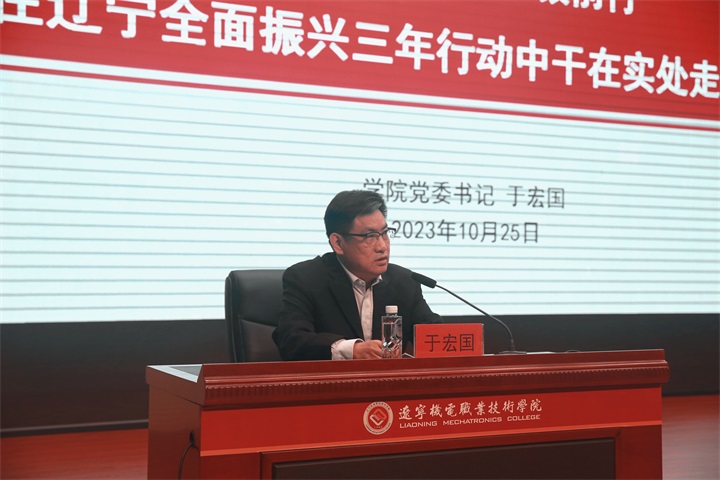 于宏國結(jié)合主題教育學(xué)習(xí)體會和學(xué)校工作實(shí)際,對習(xí)近平總書記在新時(shí)代推動?xùn)|北全面振興座談會上發(fā)表的重要講話精神進(jìn)行了深入解讀,對遼寧省委及省教育廳召開的“決戰(zhàn)四季度決勝首戰(zhàn)年”動員部署會進(jìn)行了深刻分析,強(qiáng)調(diào)要深度參與遼寧全面振興實(shí)踐,為遼寧振興發(fā)展輸送更多急需的高素質(zhì)技術(shù)技能型人才,在實(shí)施全面振興新突破三年行動中與遼寧同向同行、共進(jìn)共贏。