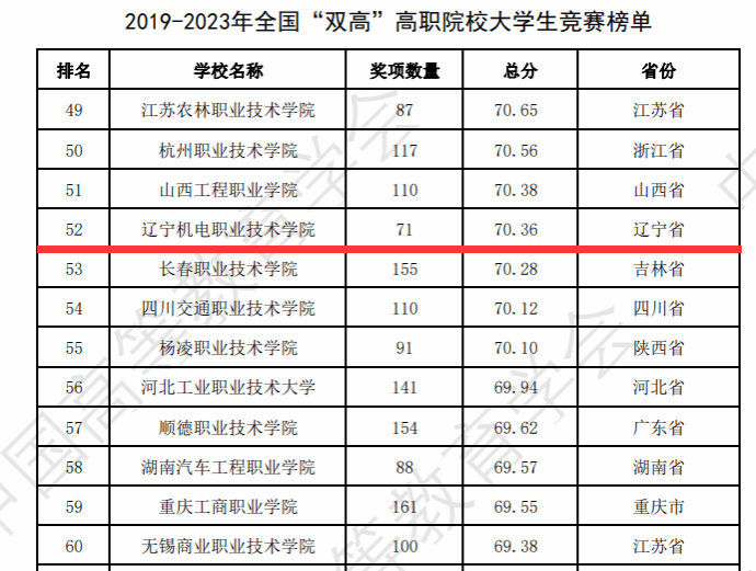 近日,中國高等教育學(xué)會高校競賽評估與管理體系研究專家工作組發(fā)布《2023全國普通高校大學(xué)生競賽分析報告》,我校獲“2019-2023年東北地區(qū)高職院校大學(xué)生競賽榜單”第一名。