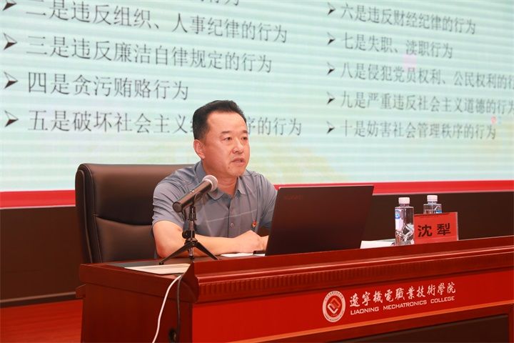 6月28日下午,我校2024年度干部培訓暨黨紀學習教育專題輔導會在報告廳舉行。紀委書記沈犁深入解讀《中國共產(chǎn)黨紀律處分條例》(以下簡稱《條例》)修訂要點。學校領導及中層干部、黨支部書記和直屬支部委員70余人參加會議。