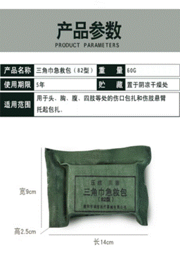 三角巾(急救包) | 82型三角巾 | 8 | 50個 | 400 |