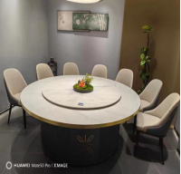 1 | 圓餐桌1 | ★餐桌尺寸:直徑3000mm*高720mm;轉(zhuǎn)盤尺寸直徑1500mm;桌面材質(zhì):直徑3000mm巖板壓鐵鍍金邊,中間轉(zhuǎn)盤巖板壓鐵鍍金邊以及底圈,桌芯轉(zhuǎn)盤鑲嵌3個(gè)功率2500w隱形電磁爐,巖板厚度120mm;底座尺寸:壁厚1.0鐵制桶形底座,尺寸直徑1500mm不銹鋼包邊以及底圈,內(nèi)部鋼架結(jié)構(gòu),優(yōu)質(zhì)電機(jī),電動(dòng)轉(zhuǎn)盤,遙控控制。 |
