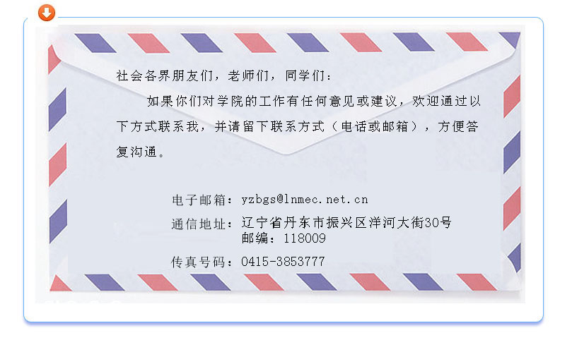 地址:遼寧省丹東市振興區(qū)洋河大街30號 郵編:118009 招生熱線:0415-3853111(222) 就業(yè)熱線:0415-3853999(299)